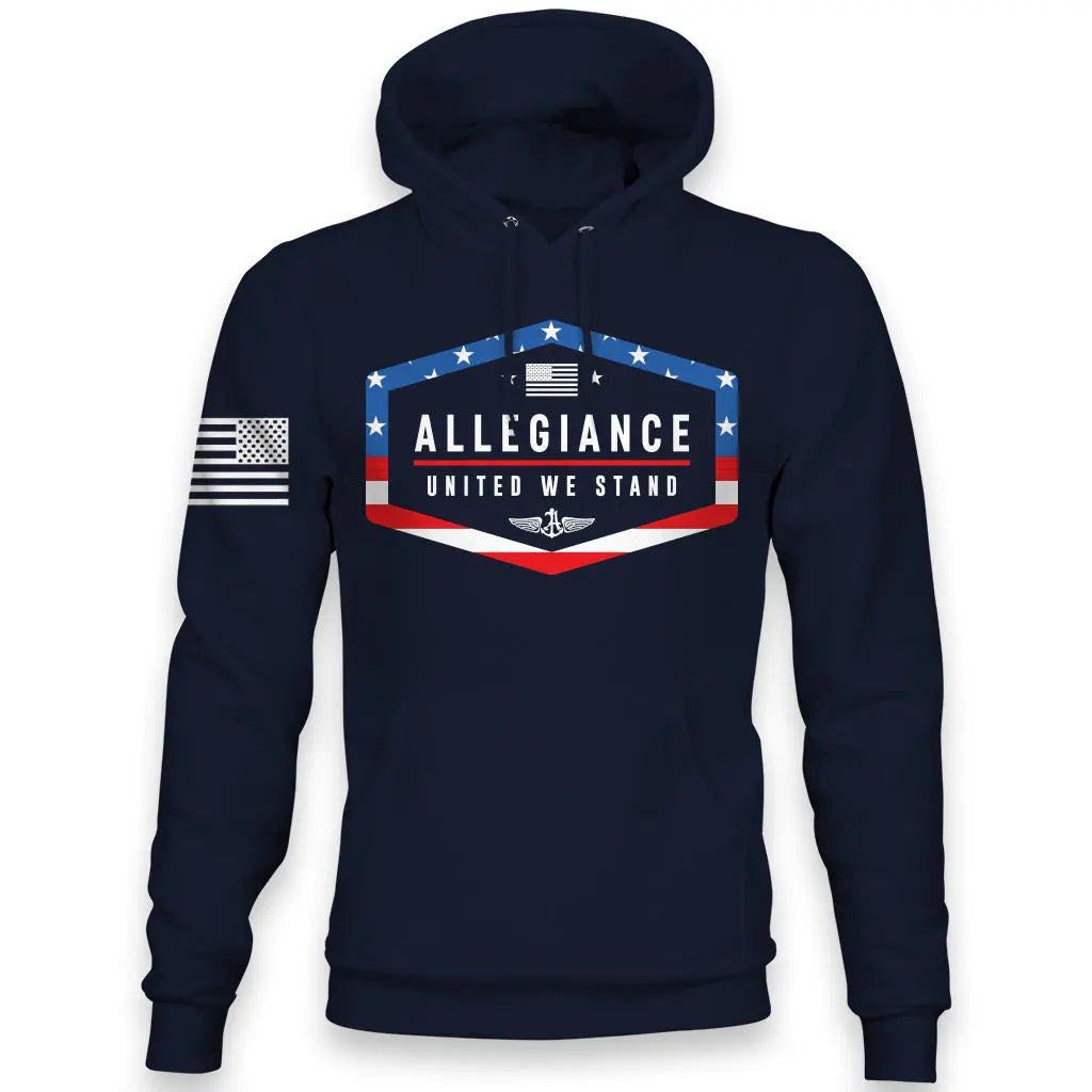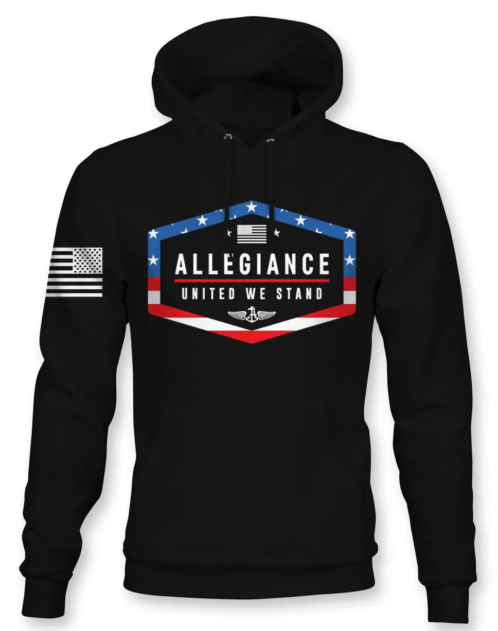 Looking for a way to show your patriotism? Look no further than the Allegiance Republic Hoodie! This stylish hoodie features our Republic logo filled in with the American Flag, screen printed large on the front with a small classic logo printed on the back shoulder. Plus, the sleeve is adorned with an assaulting American Flag for an added touch of patriotism. Made from a comfortable 80% cotton/20% polyester blend, this hoodie is perfect for showing your love for the USA. Machine washable for easy care, it's a must-have for any patriot. So show your true colors and grab an Allegiance Republic Hoodie today!