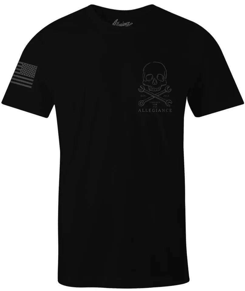 Looking for a way to show your support for the American way of life? Or maybe you just want to show off your patriotism in a stylish way. Either way, the Allegiance Clothing Wrench Tee is the shirt for you. This premium tee features the Wrench logo screen printed small on the front and large on the back, along with an American Flag printed on the sleeve. Whether you're a wrench-twister or mechanic yourself, or you just appreciate good quality clothing, this shirt is perfect for you. So show your allegiance to America today with the Allegiance Clothing Wrench Tee. Made in the USA!