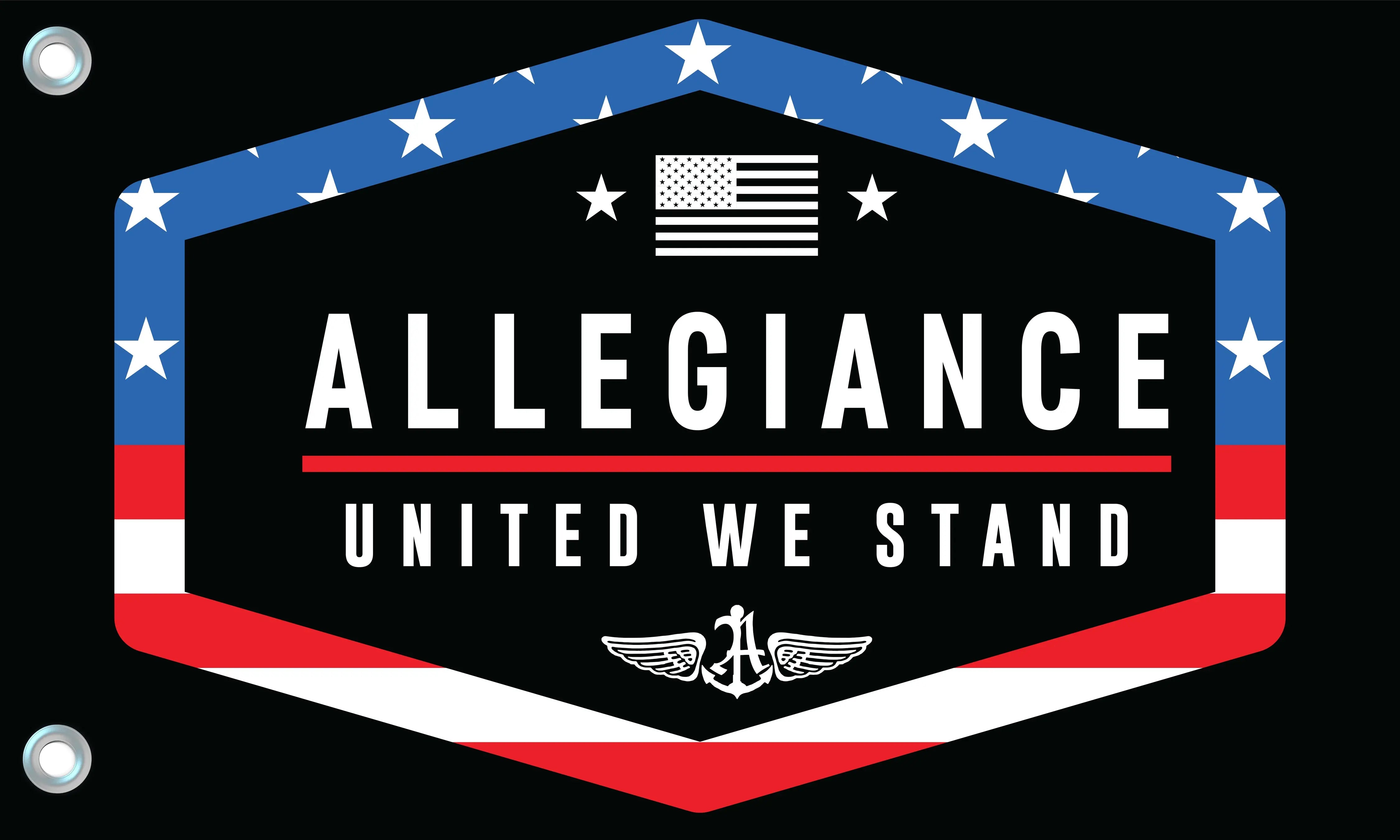 The Allegiance Clothing Republic Flag. Our flags are constructed from two pieces of high quality 210D polyester double stitched together for extra durability, a shade cloth in between, and two metal grommets. These flags are extremely durable and are perfect for outdoor or indoor use! Flags are all 18" X 30" . This flag is perfect to fly anyplace, anytime, anywhere! Show your Allegiance!