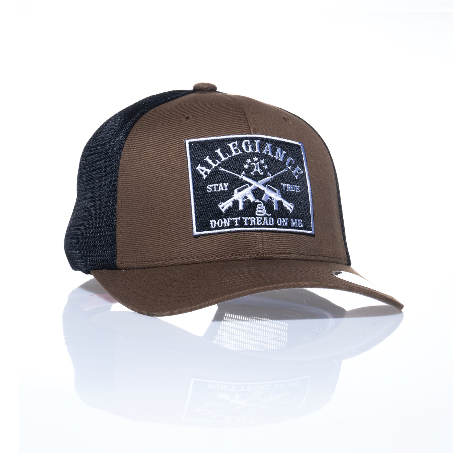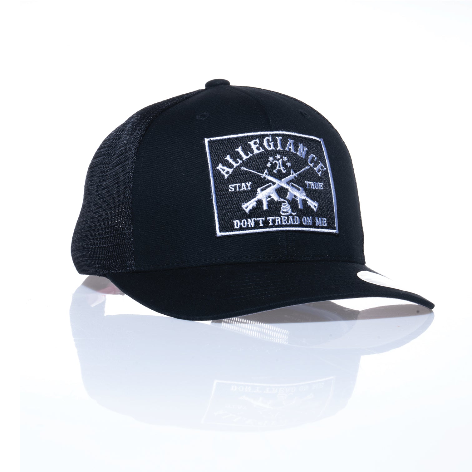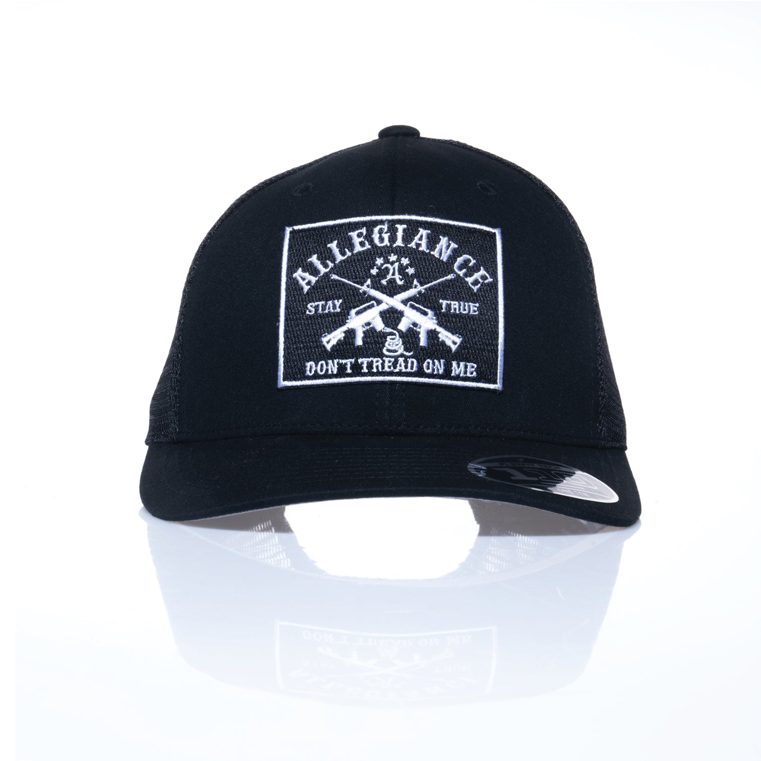 The Allegiance Don't Tread 110 Trucker Hat is the perfect blend of bold design and everyday functionality. Crafted with a durable 65% polyester and 35% cotton blend, this hat ensures comfort and longevity. The breathable mesh panels provide excellent ventilation, while the Flexfit 110 technology and adjustable snapback closure offer a secure, customizable fit for all-day wear. Featuring the iconic "Don't Tread On Me" patch with crossed rifles and the Allegiance logo, this hat makes a strong statement of pride and resilience. Whether you're out on the range, exploring the outdoors, or elevating your casual style, the Don't Tread 110 Trucker Hat has you covered. Available in multiple colors to match your look, this hat is more than an accessory—it's a symbol of allegiance. Grab yours today!