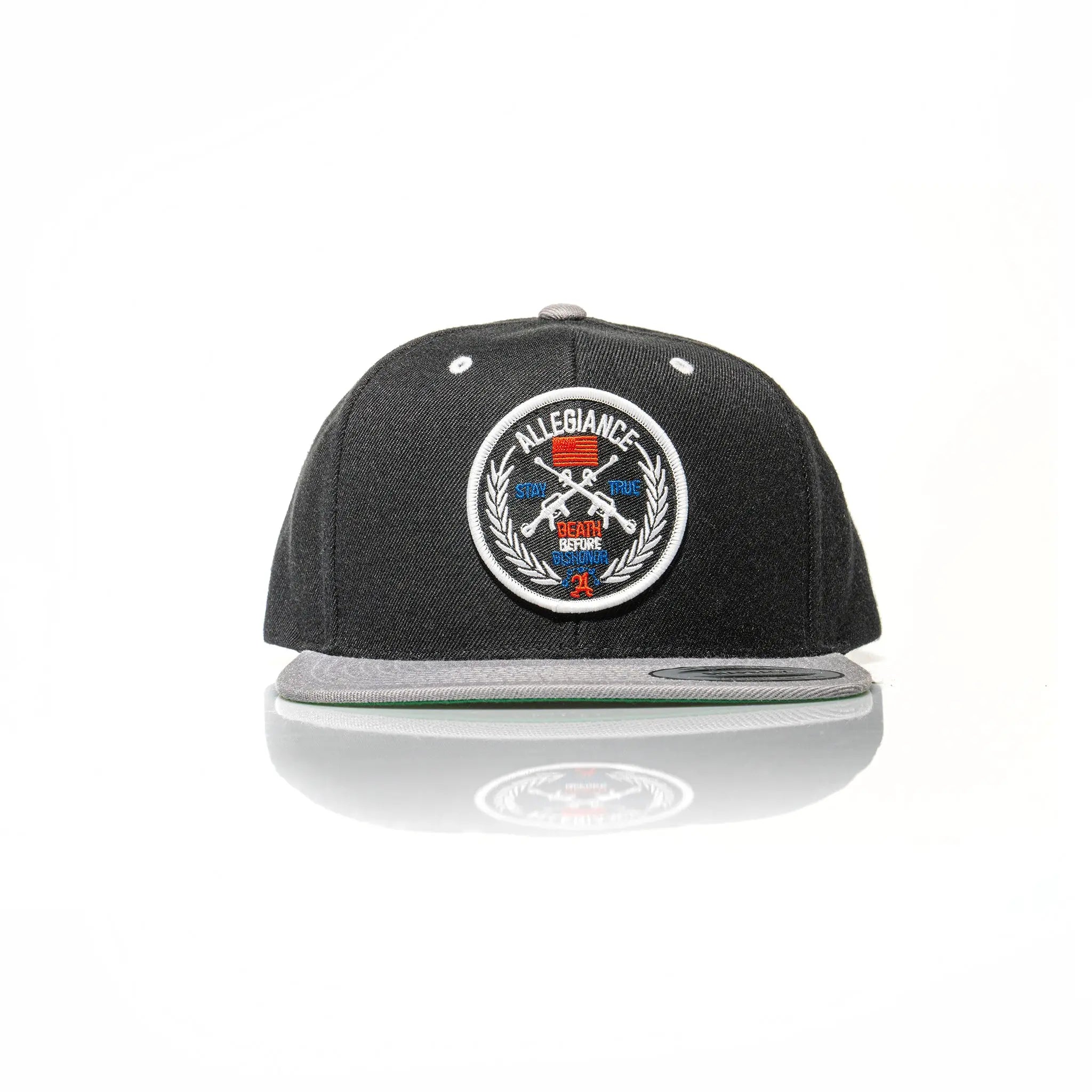 Looking for a way to show your patriotic pride? Look no further than the Allegiance Triumph Snapback Hat! This premium quality snapback is made from 80% acrylic and 20% wool for a comfortable fit. It features our Triumph patch sewn on the front, making it a great way to show your support and stand out from the crowd. Whether you're hitting the gym or just running errands, this is the perfect hat for showing your patriotism and making a statement. Get yours today!