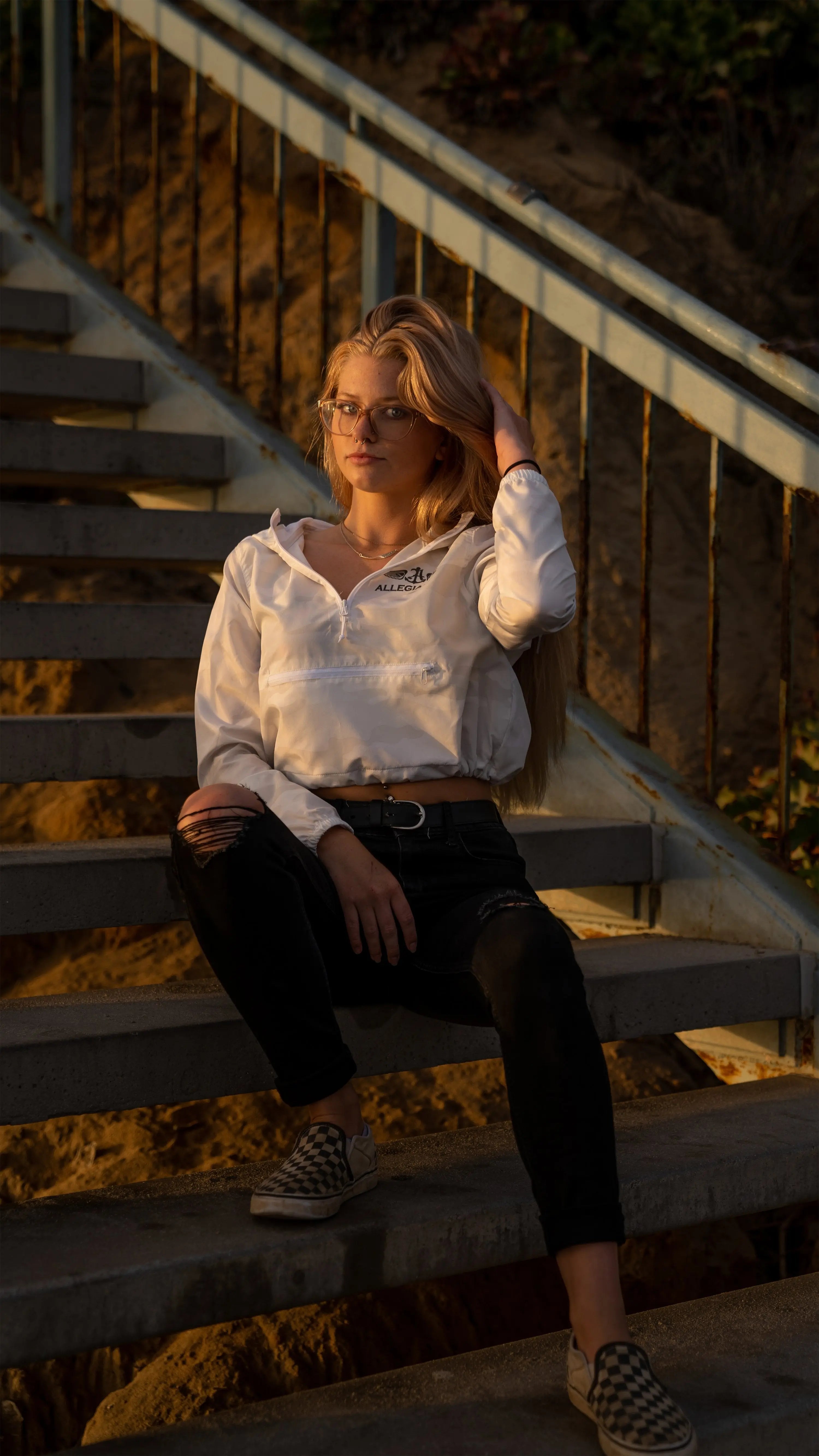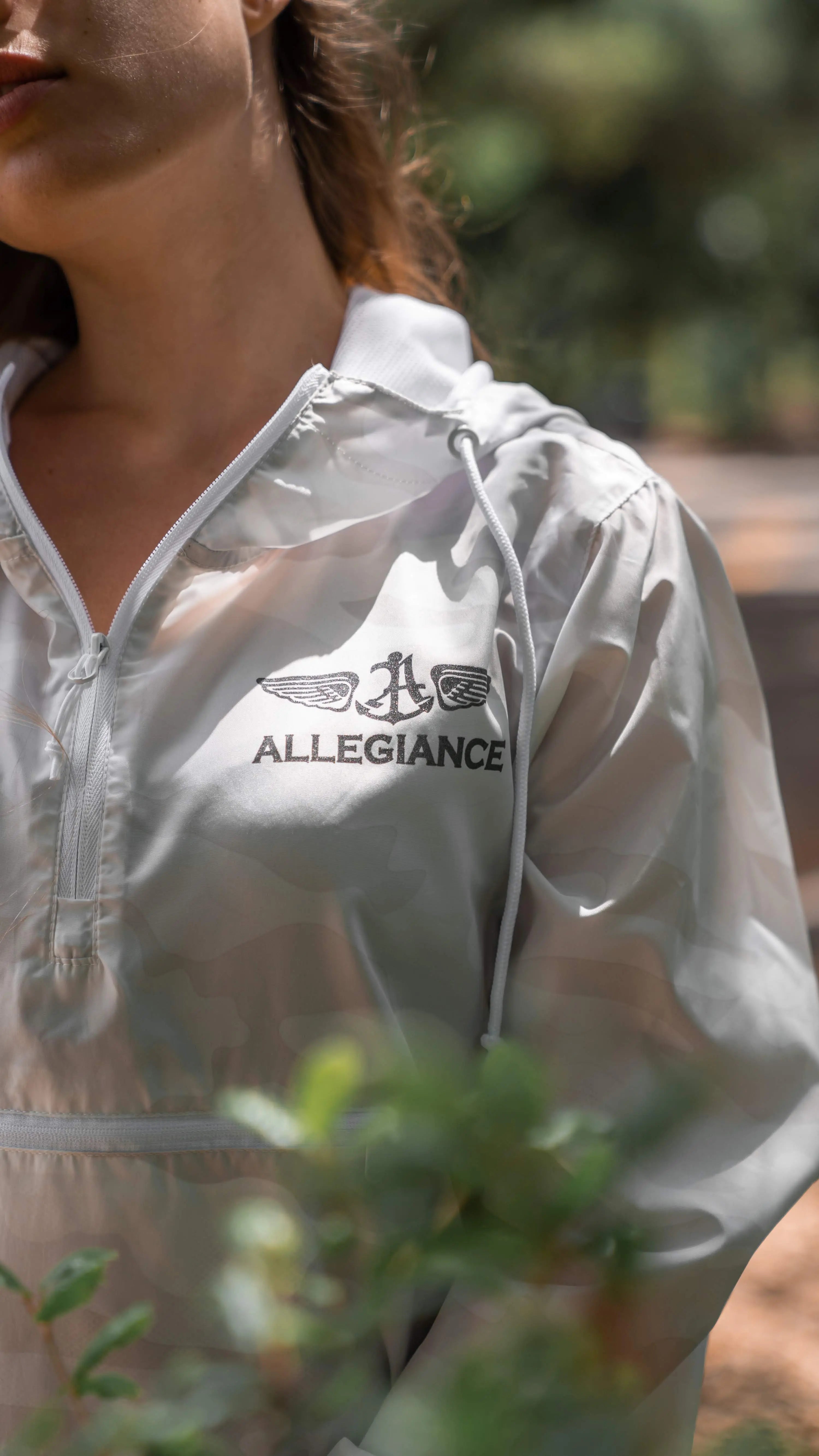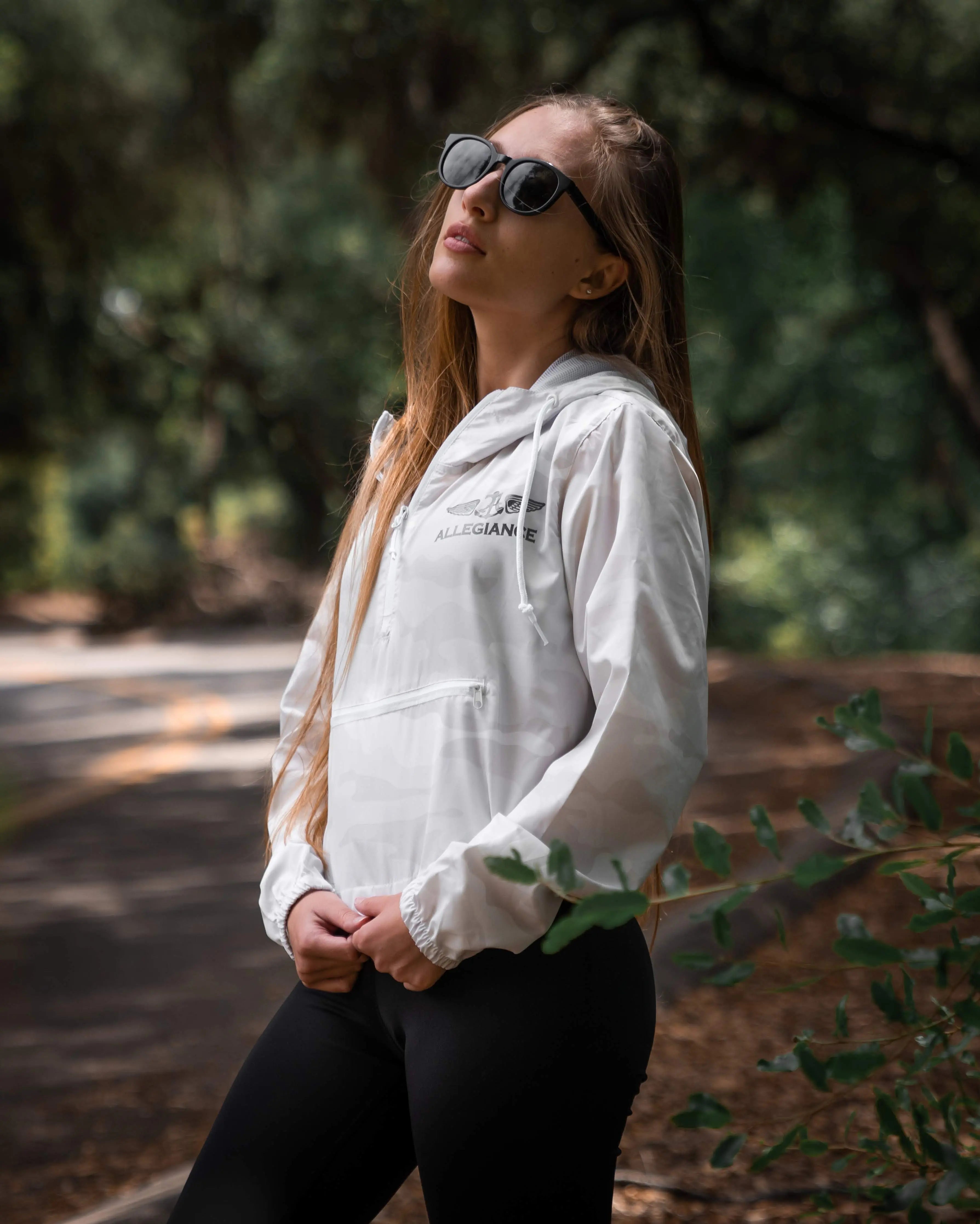 Allegiance Clothing Ateam Women's Crop Windbreaker. Our Ateam Women’s Lightweight Crop Windbreaker is styled for a fun & active lifestyle. It's soft to the touch and water-resistant, featuring a front logo, front zipper, scuba neck, horizontal zipper pocket, and a 3 panel hood with mesh lining. Constructed from 100% polyester.