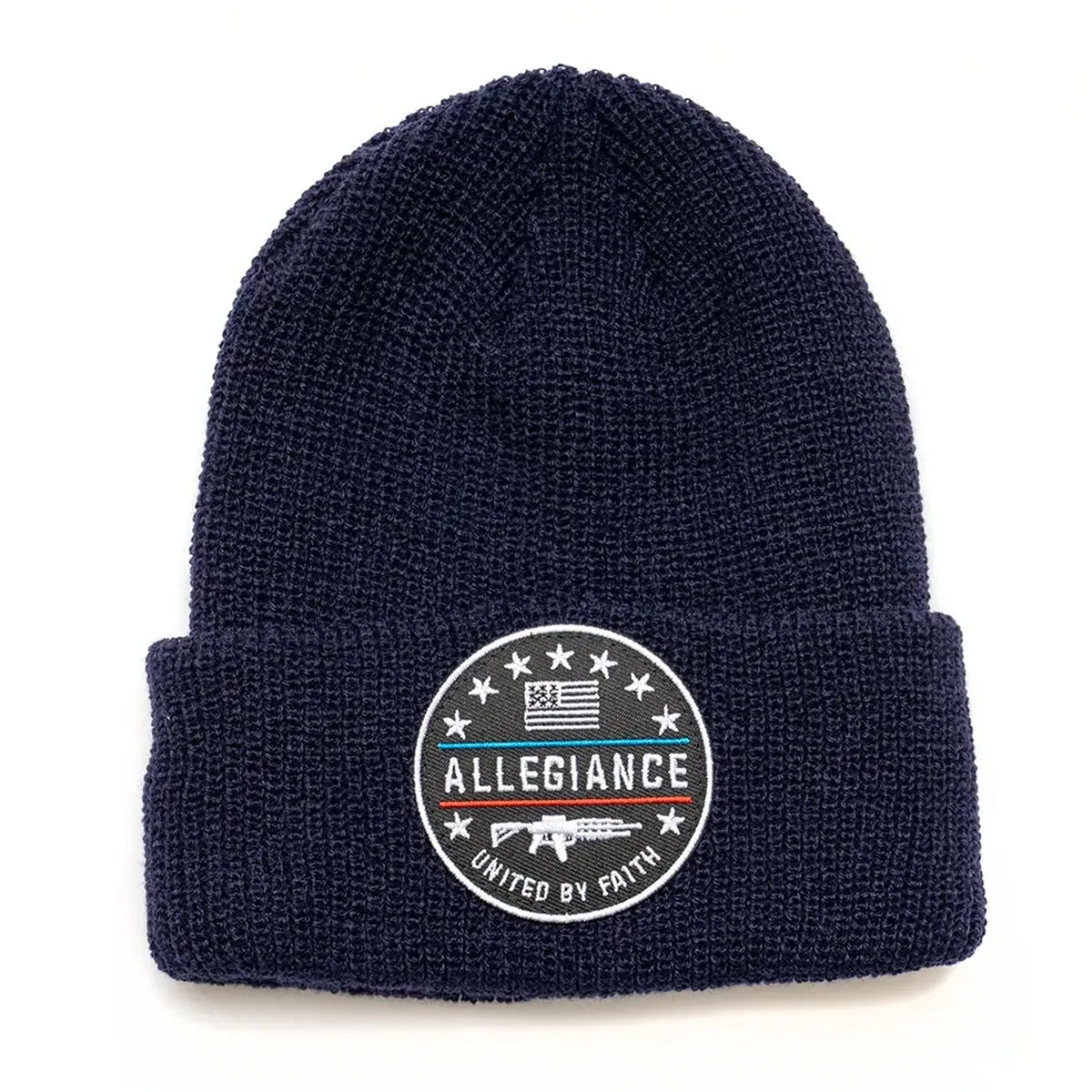Gear up for cooler weather with the Allegiance Combat Beanie. Constructed from 100% acrylic, this beanie is designed to keep you warm and comfortable while maintaining durability. Its versatile knit design ensures a snug fit, making it perfect for outdoor adventures or everyday wear. The embroidered patch on the front features the Allegiance logo, complete with a bold rifle emblem and "United By Faith" message, showcasing your commitment to strength, unity, and values. Whether you're out in the elements or adding a stylish touch to your look, the Combat Beanie is a must-have accessory. Stay warm and represent your allegiance with the Combat Beanie today!