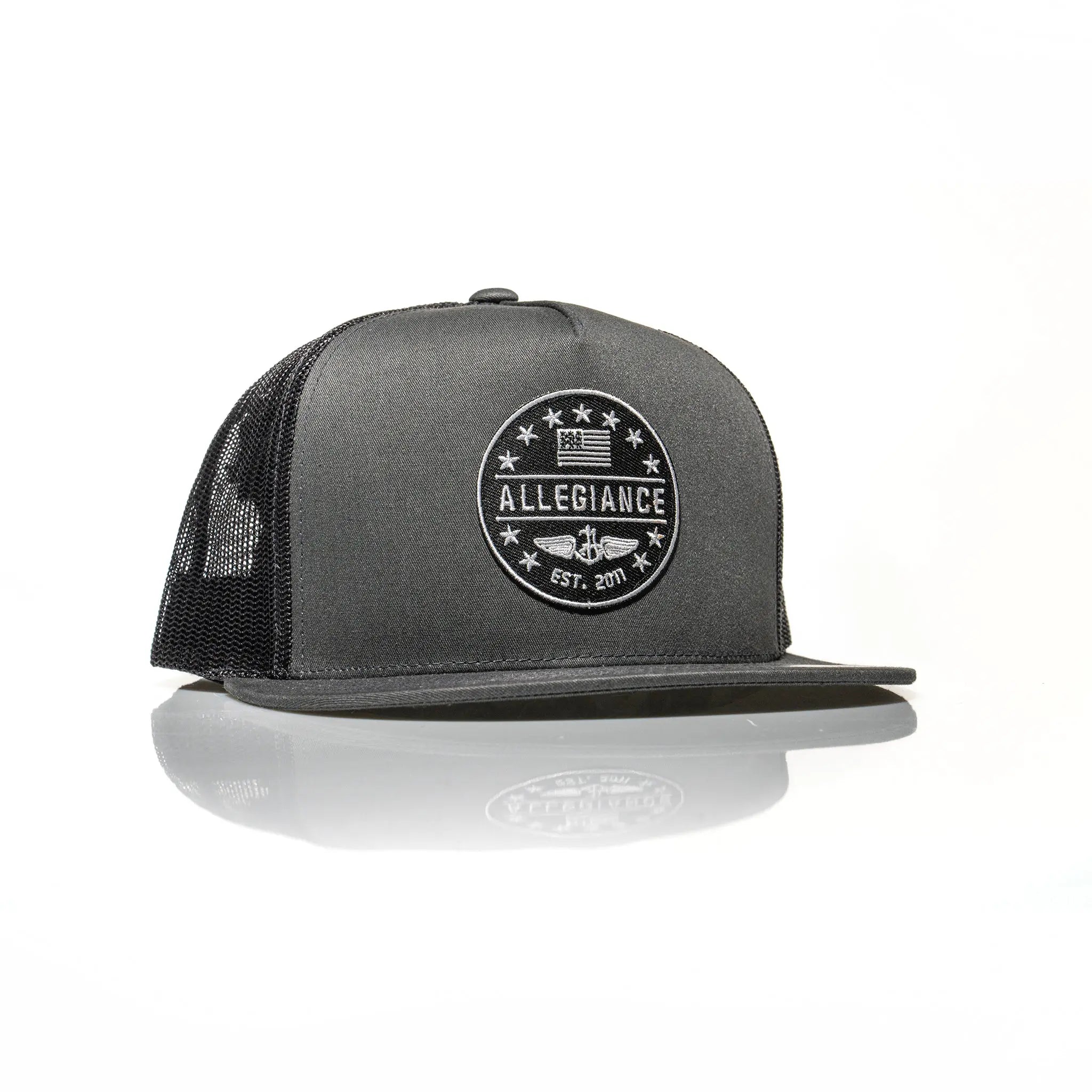 Show your support for Allegiance Clothing with the EST. 11 Trucker Hat! This high-quality hat is perfect for anyone who wants to show their patriotism. It's made of a 65% Polyester and 35% Cotton blend, making it durable and comfortable. The breathable mesh panels offer excellent ventilation and sweat control, while the EST. 11 patch sewn on the front provides a touch of style. This patch commemorates the year we were established. The Trucker Hat is perfect for everyday wear, whether you're hitting the town or spending a day at the range. Choose from a variety of colors to find the perfect look for you. Show your support for Allegiance with this awesome hat!