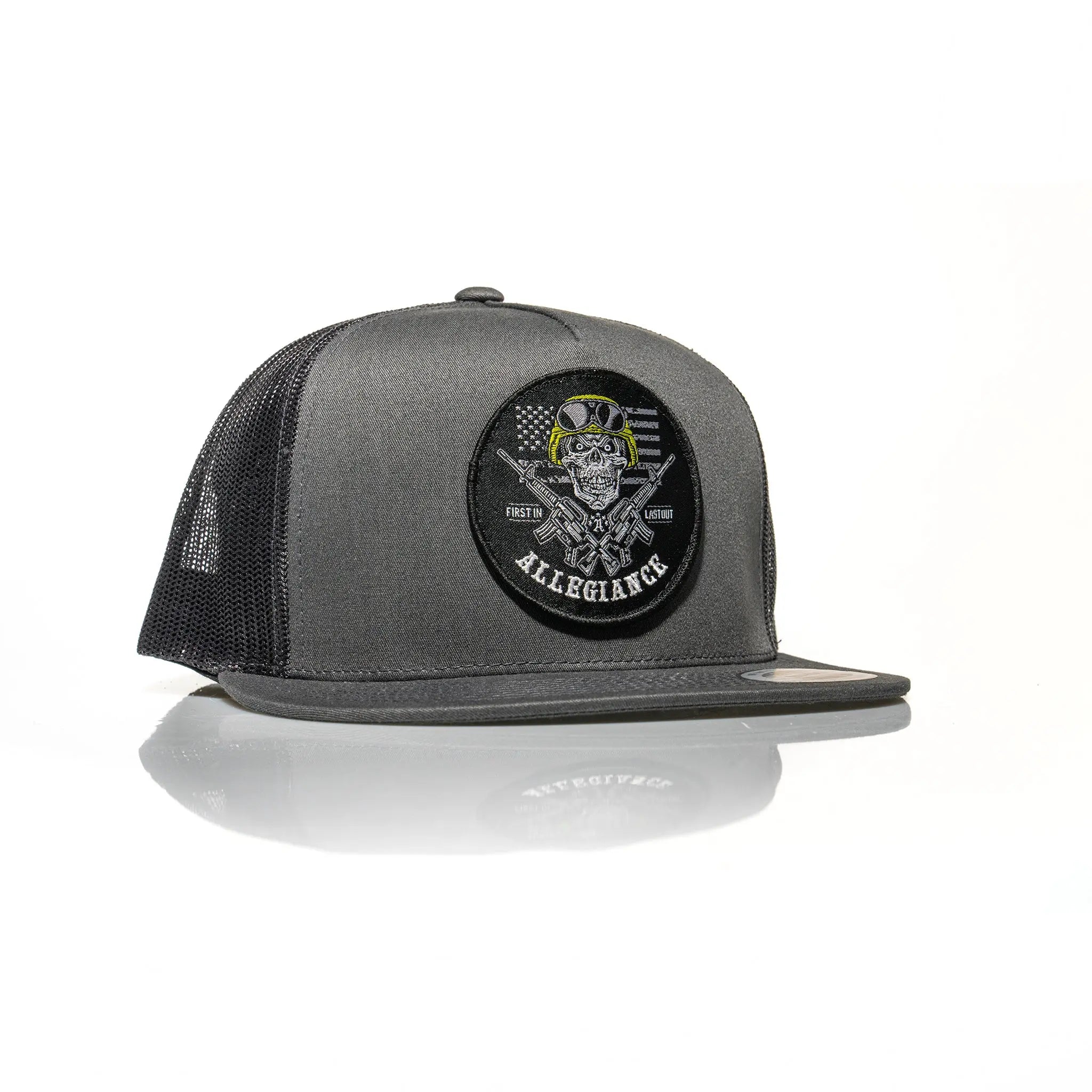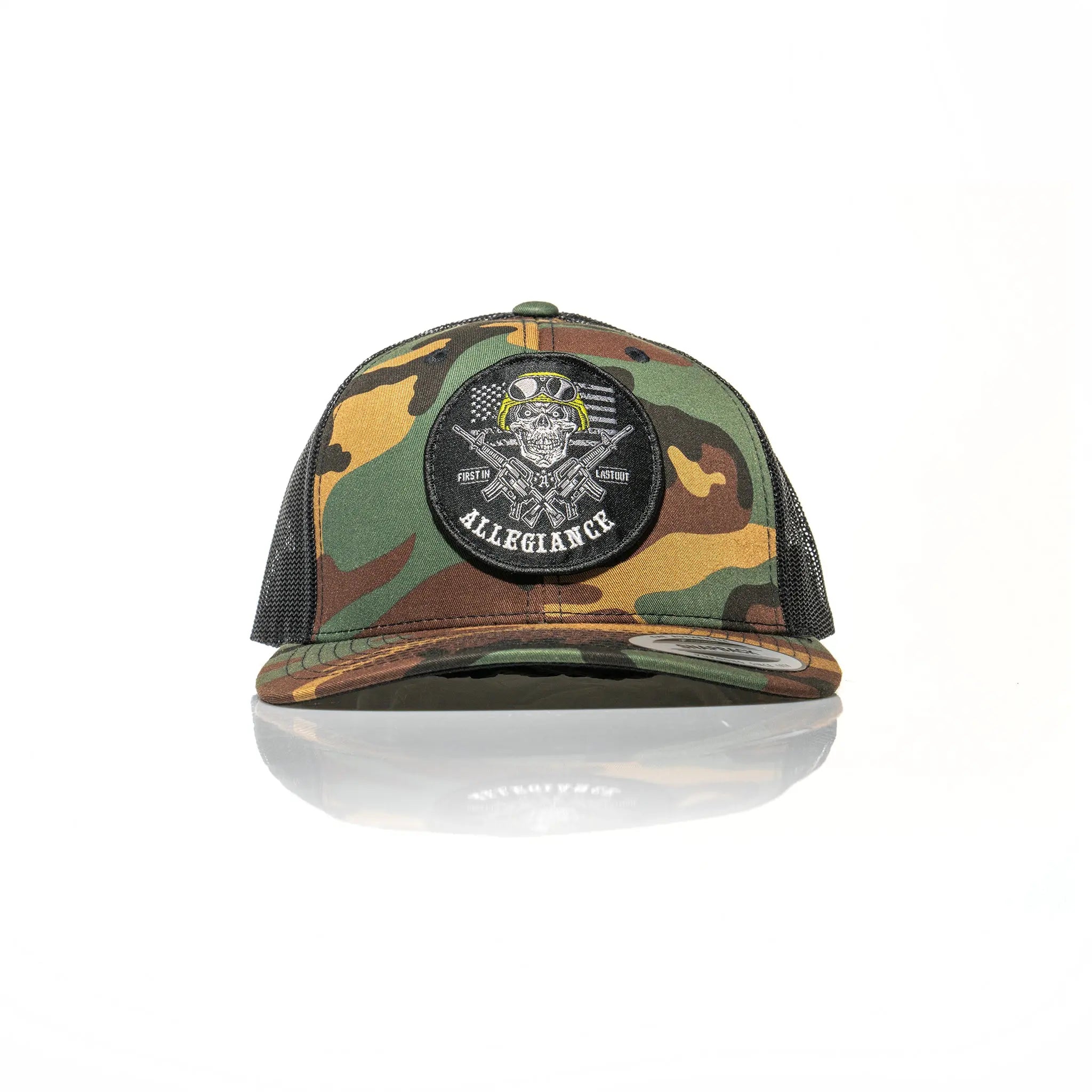 Looking for a way to show your patriotism? Look no further than the Allegiance Last Out Trucker Hat! This high-quality hat is perfect for anyone who wants to show their support for their country. It's made of a durable 65% Polyester and 35% Cotton blend, making it comfortable and built to last. The breathable mesh panels offer excellent ventilation and sweat control, while the bold Last Out patch sewn on the front makes a statement. Choose from a variety of colors to find the perfect look for you. Whether you're hitting the track or spending a day at the range, this hat is perfect for showing your Allegiance!